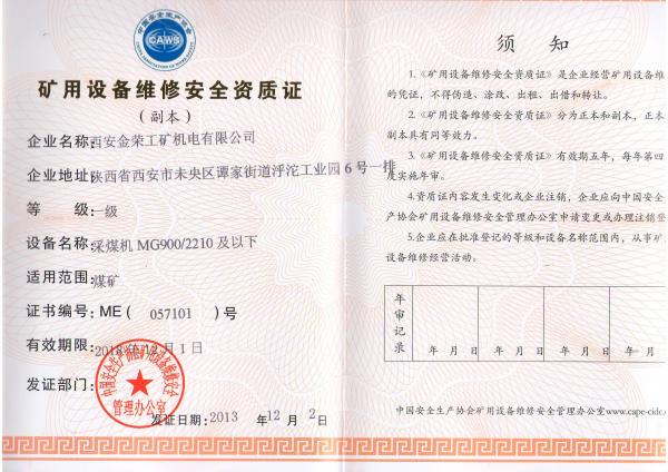 采煤機大修資格證